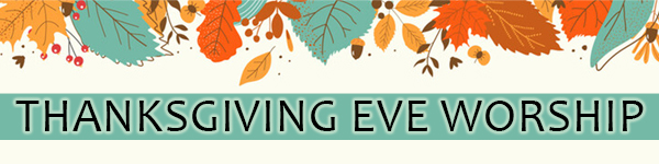 THANKSGIVING EVE WORSHIP – On Wednesday, Nov 26 at 6:30pm join us for a family-friendly service of thanks and praise in the Gathering Space. MORE INFO