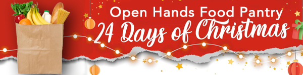OPEN HANDS FOOD PANTRY – 24 Days of Christmas: Each day Dec. 1-24 pick an item from the pantries ‘most-needed’ list and place it in a grocery bag to return to the pantry with the quick prayer: “Lord, bless whoever eats this food with the presence of Jesus.” VIEW FULL LIST Paper copies available at the Welcome Center.