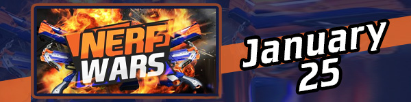 - Jan 25 – NERF WARS! – 6pm-8pm